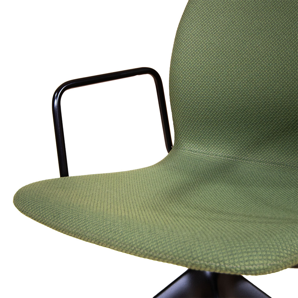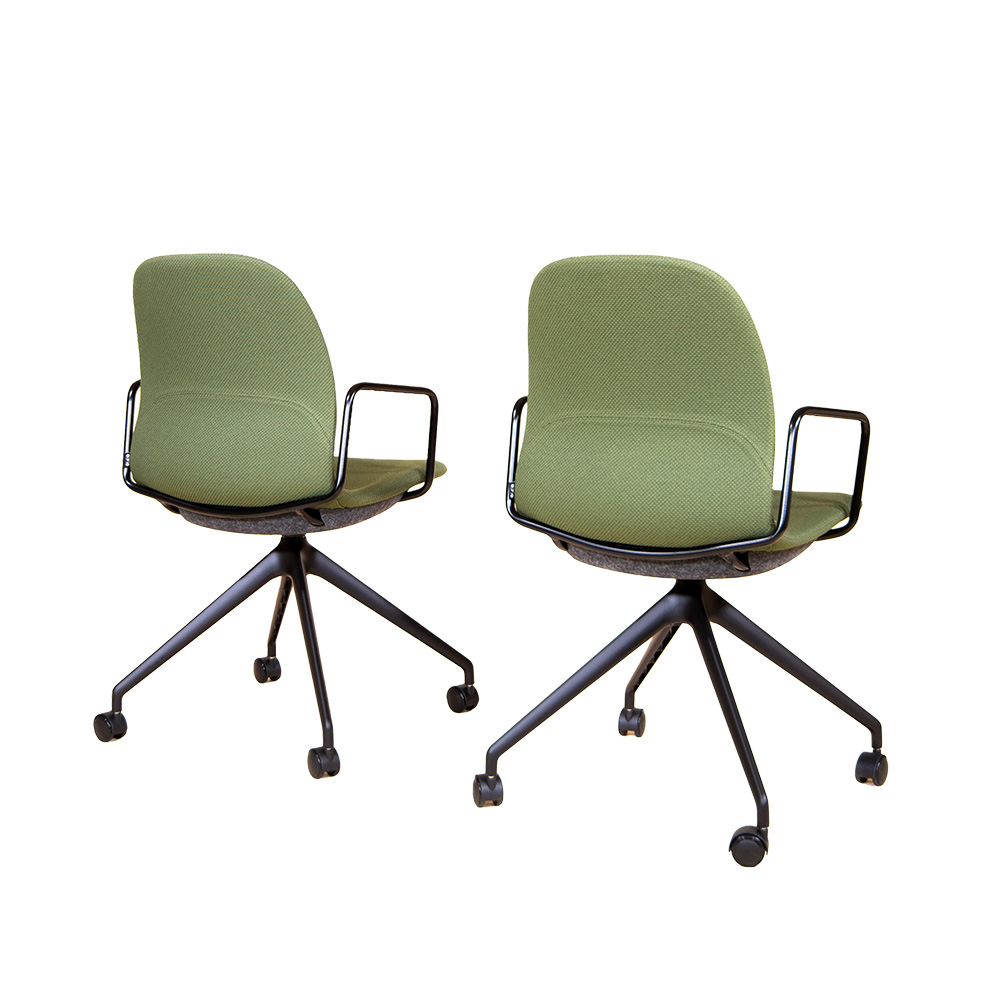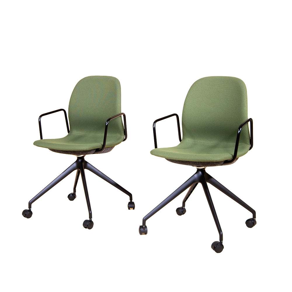 Myymälän mallierä laadukkaita EFG Arcie asiakastuoleja, tämän ristikkomallin valmistus lopetettu. Tuoleissa on musta ristikko ja käsinojat. Istuimessa ja selkänojassa on laadukas, vihreä julkitilakangasverhoilu.
