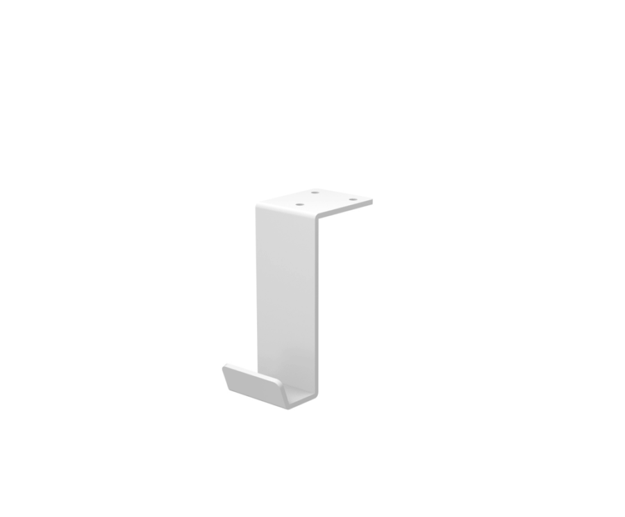 Metallinen koukku maton tai käsilaukun/repun ripustamiseen pöytälevyn alle, kiinnitys kolmella ruuvilla.