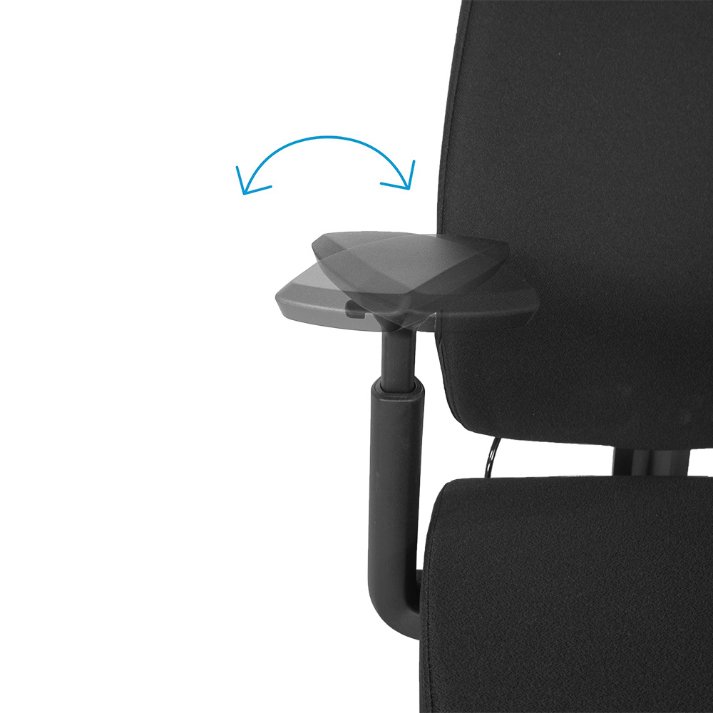 - Irroitettavat 4d -käsinojat, leveyden- ja korkeudensäädöllä. Käsinojien yläosa kääntyy 360° ja liukuu eteen- ja taaksepäin. Käsinojat tulevat aina mukana.