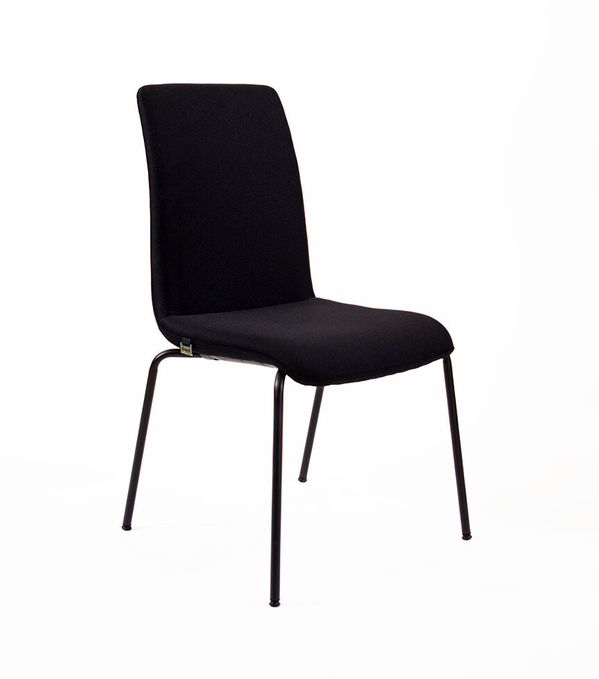 Royal Tessa tuoli on kevytpehmusteinen asiakastuoli. Sen musta ympäriverhoiltu korkea selkänoja antaa mukavan istuttavuuden. Verhoilu on syvän mustaa laadukasta julkitilakangasta. 100% polyesteri. Hankauskesto 100 000 martindalea.