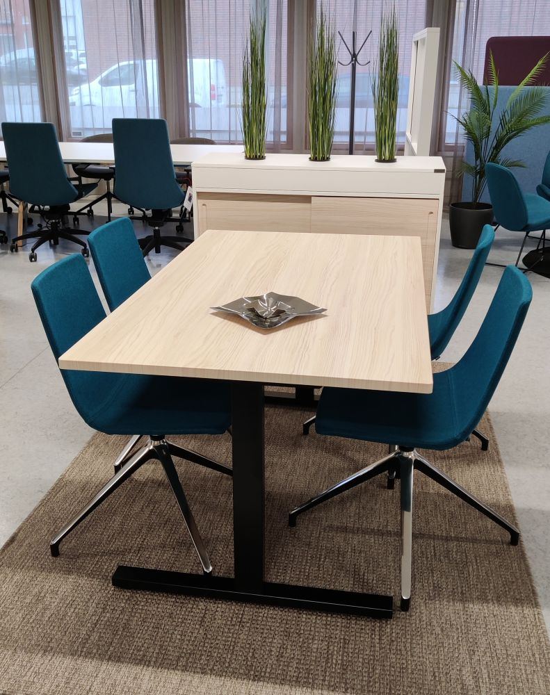 T-Easy neuvottelupöytä - myymälämalli on kaunis pöytä tilaan kuin tilaan. Pöydän tarkkaan mietityt yksityiskohdat tekevät siitä monikäyttöisen ja tyylikkään kokonaisuuden. T-linjainen metallijalusta sopii moneen paikkaan. Kotona se voi olla ruokapöytä ja toimistossa monitoimitilan projektipöytä, mahdollisuudet ovat lähes rajattomat.
